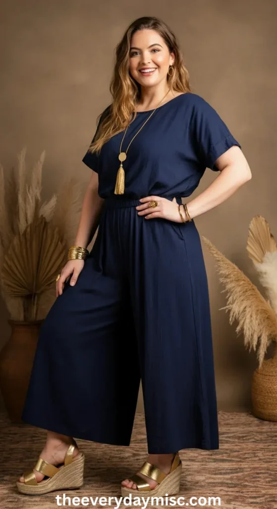 A palazzo-style romper is both stylish and practical.