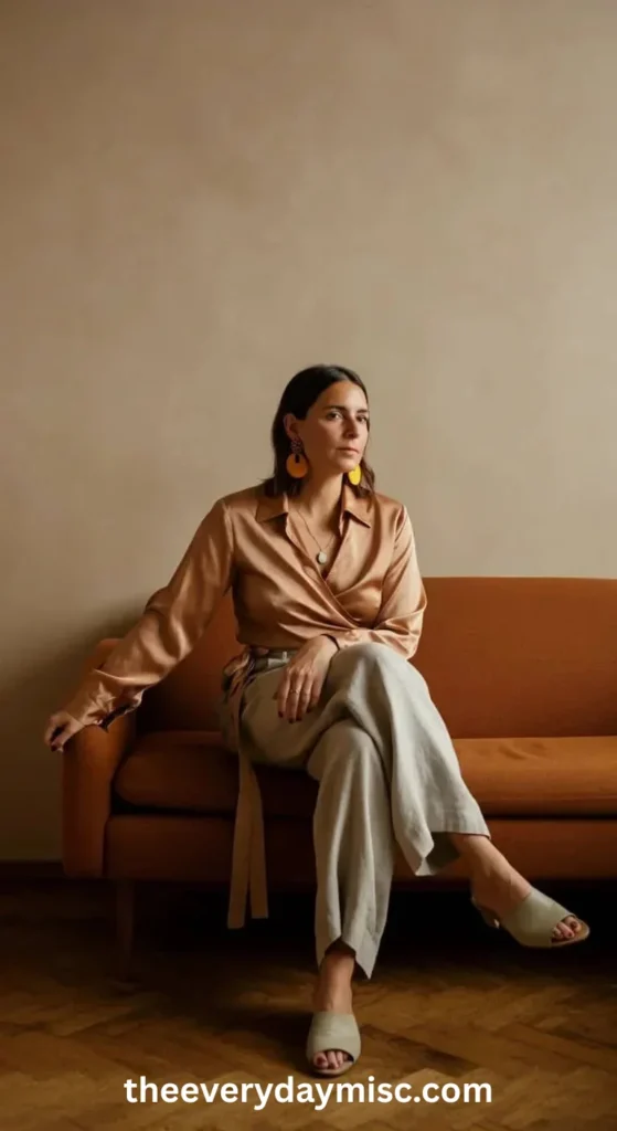 Layer it with a silk camisole, add leather slides for easy walking, and keep accessories simple and elegant.