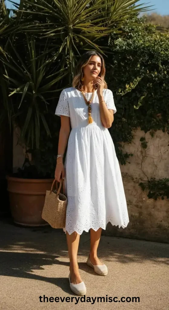A white eyelet dress looks classic and timeless.